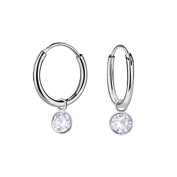 4mm Round Cubic Zirconia Sterling Silver Charm Ear Hoops