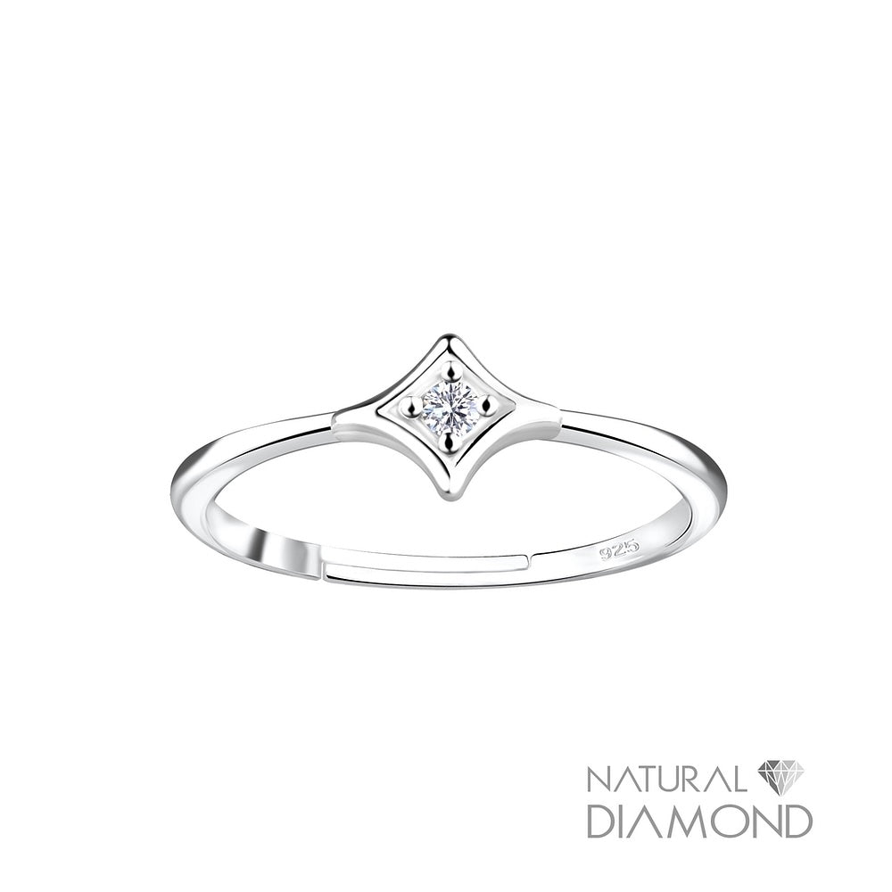 Sterling Silver Diamond Shaped Adjustable Ring With Natural Diamond