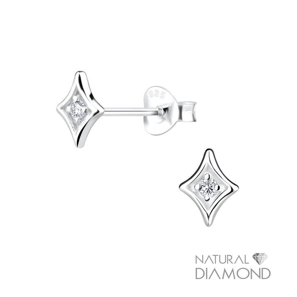 Sterling Silver Diamond Shaped Ear Studs With Natural Diamond