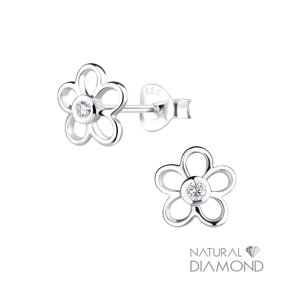 Sterling Silver Flower Ear Studs With Natural Diamond
