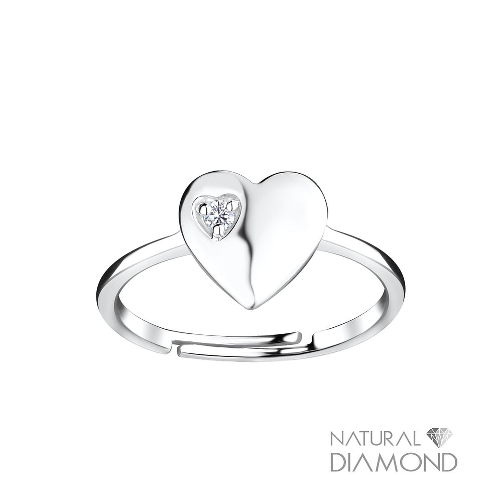 Sterling Silver Heart Adjustable Ring With Natural Diamond