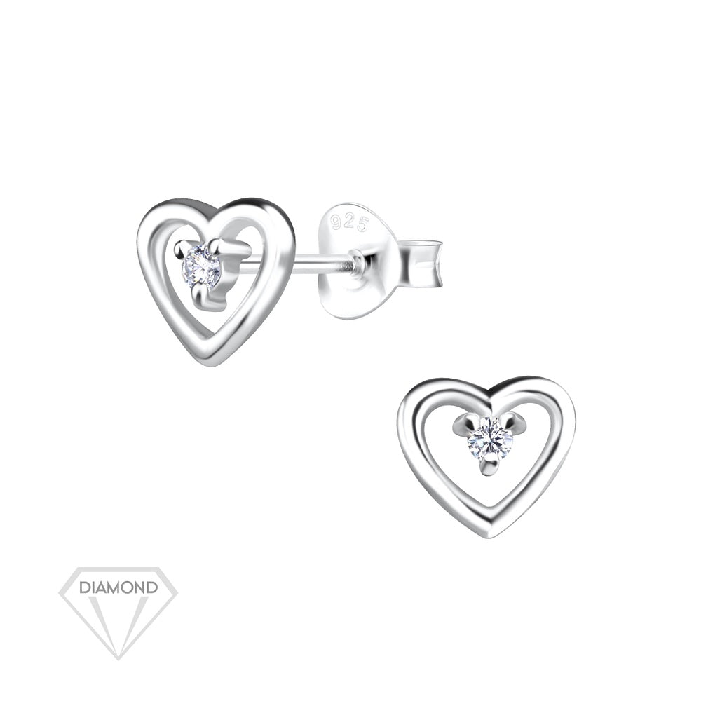 Sterling Silver Heart Ear Studs With Natural Diamond
