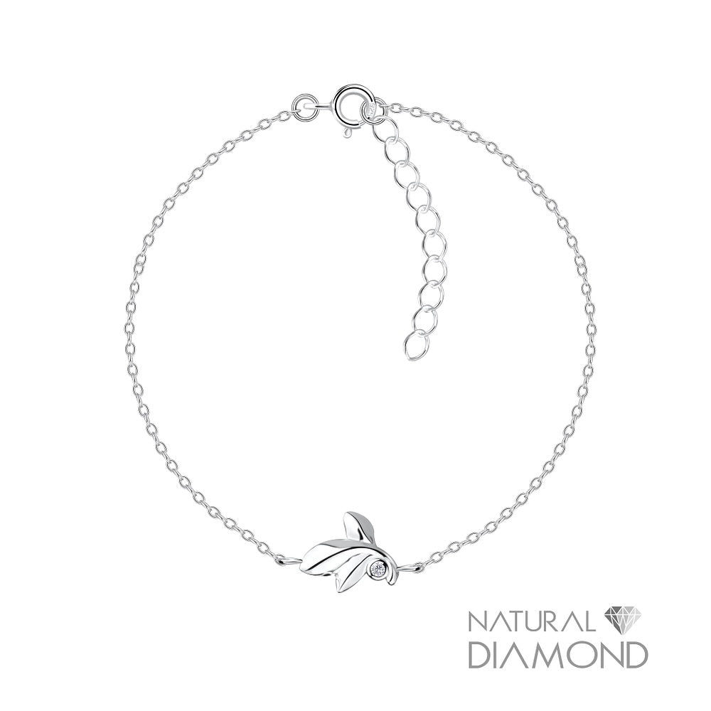 Sterling Silver Leaf Bracelet With Natural Diamond