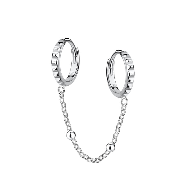 Sterling Silver Patterned Double Huggie Earrings with Chain