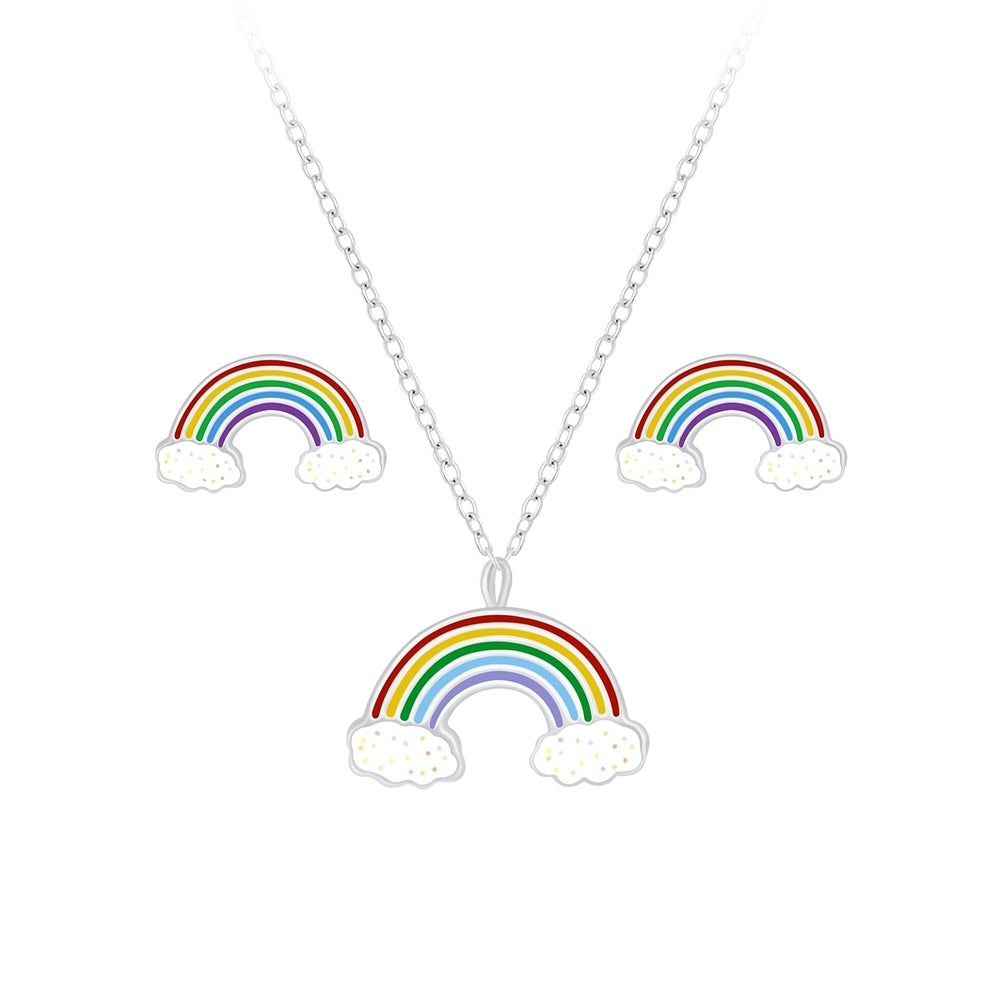 Sterling Silver Rainbow Necklace and Ear Studs Set
